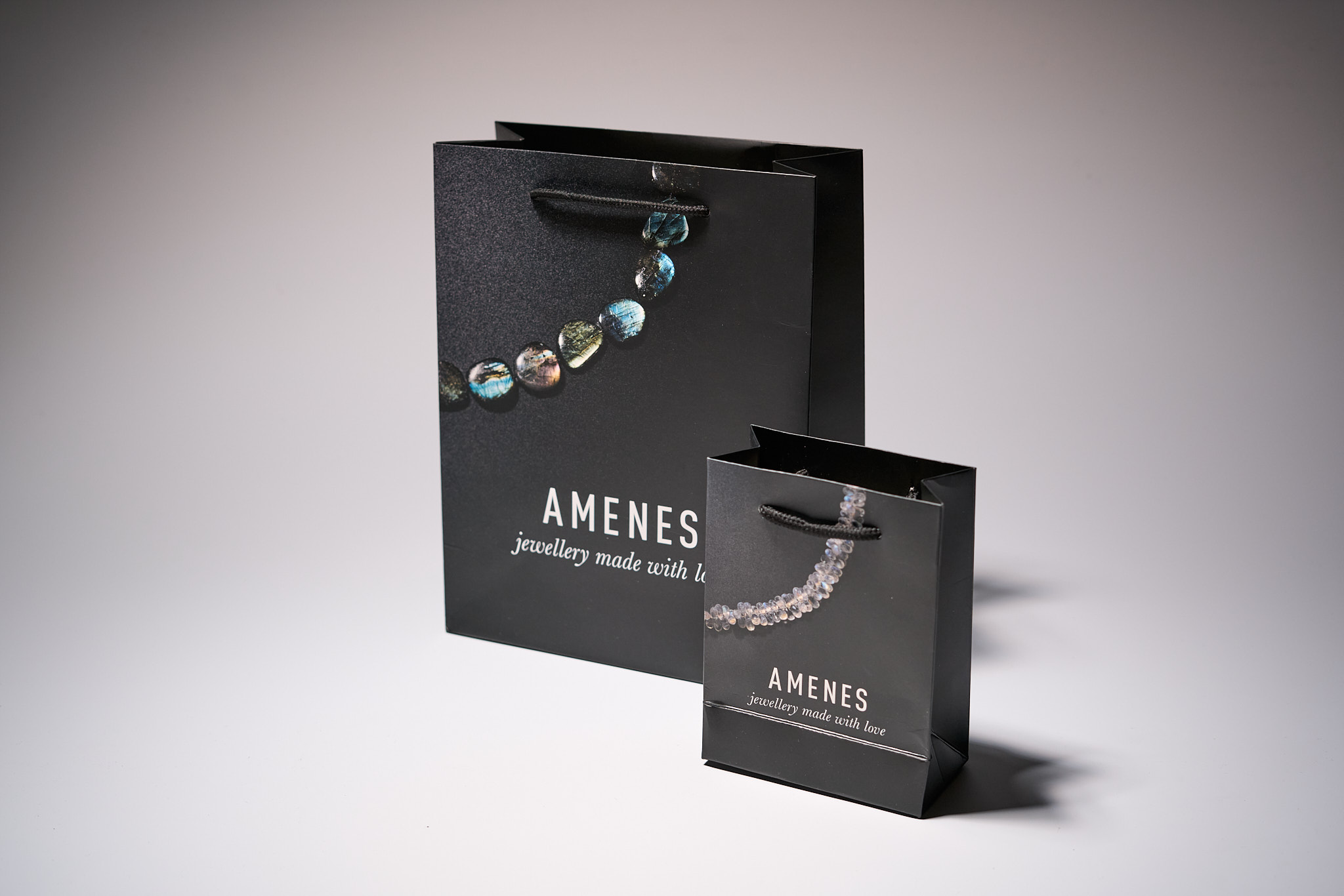 Amenes verkauft und stellt Schweizer Qualitätsschmuck her. Wir haben das Erscheinungsbild überarbeitet und neue Verpackungen gestaltet.
